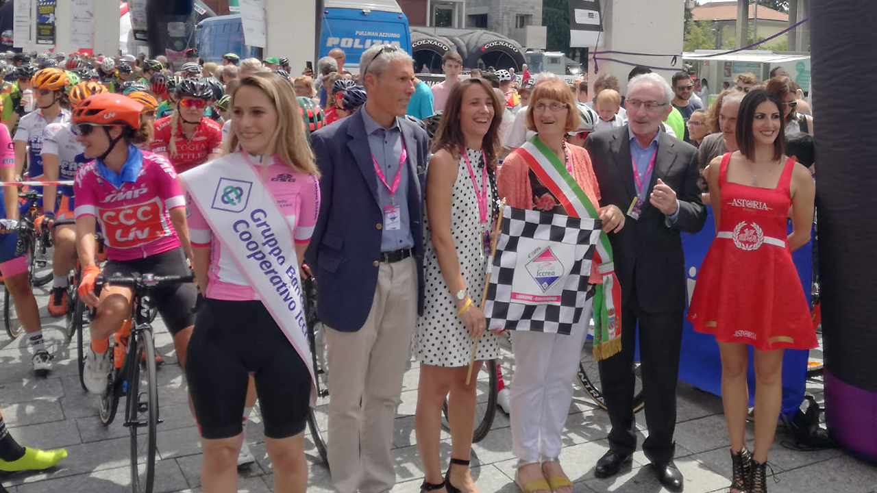 L’atmosfera delle grandi occasioni, con la presenza del testimonial Gianni Bugno, ha animato la partenza della quarta tappa del Giro Rosa Iccrea, che ha preso avvio da Lissone in un clima di grande festa. Prima dello start, Rachele Somaschini, di Cusano Milanino, campionessa italiana di Velocità in Montagna e testimonial per la Fondazione per la Ricerca sulla Fibrosi Cistica, è stata premiata da BCC Milano “per la generosità, il coraggio e la determinazione con cui si impegna, attraverso la sua passione per i motori, in un'importante opera di informazione, sensibilizzazione e raccolta fondi per la ricerca sulla fibrosi cistica”.
