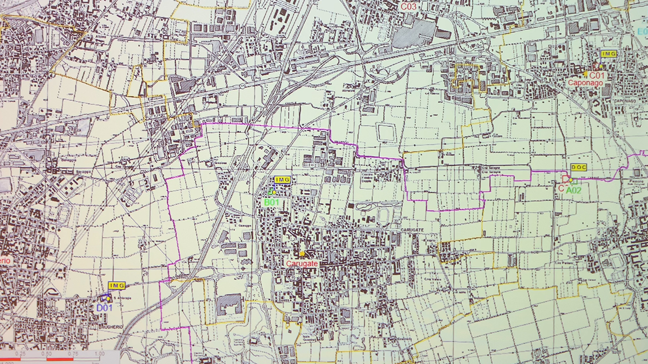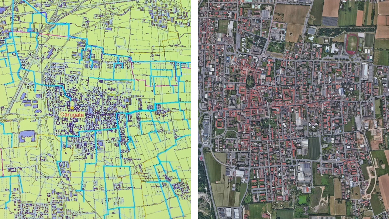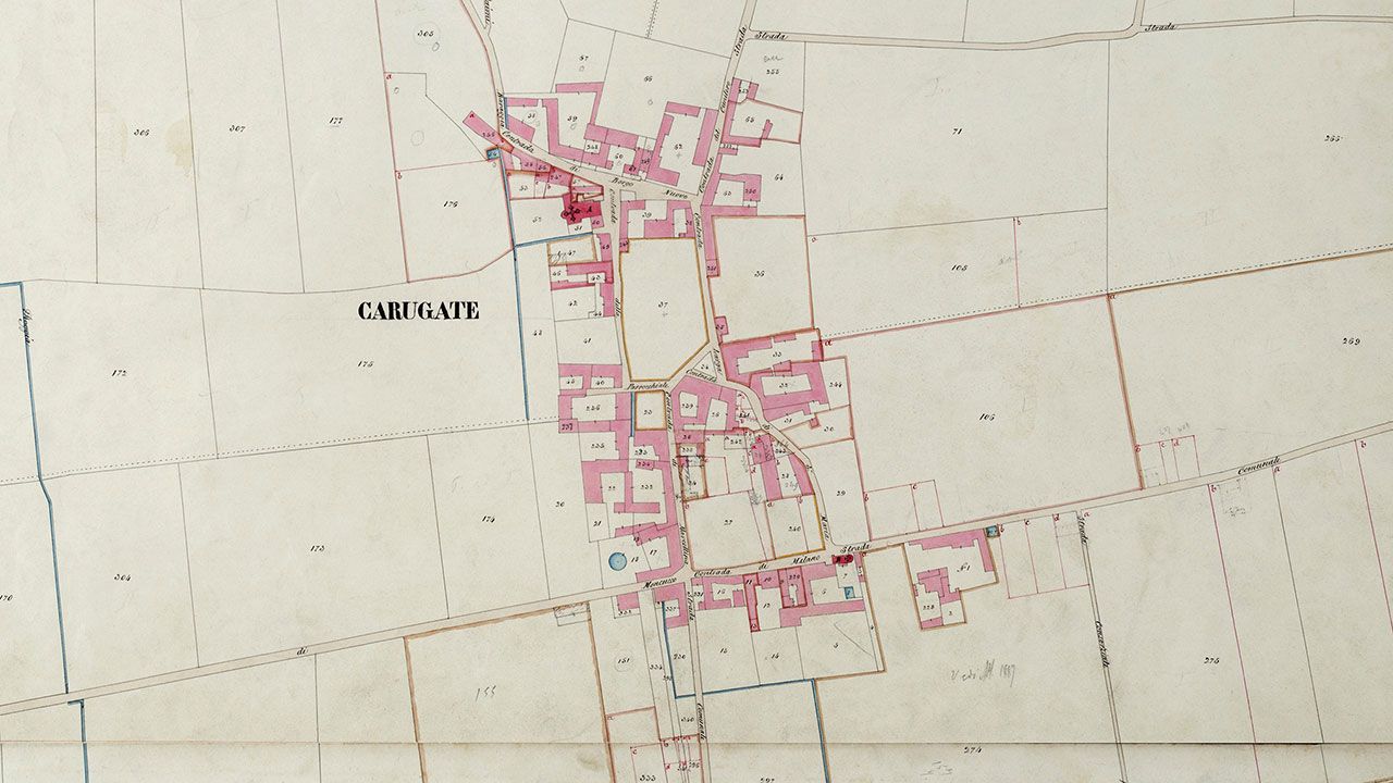Sovrapponendo in modo virtuale le fotografie è emerso in modo molto evidente che, nel reticolo urbano di Carugate, negli ultimi 50 anni si sono verificati cambiamenti molto più profondi rispetto alle trasformazioni avvenute nei cinque secoli che separano il Quattrocento dal Novecento.