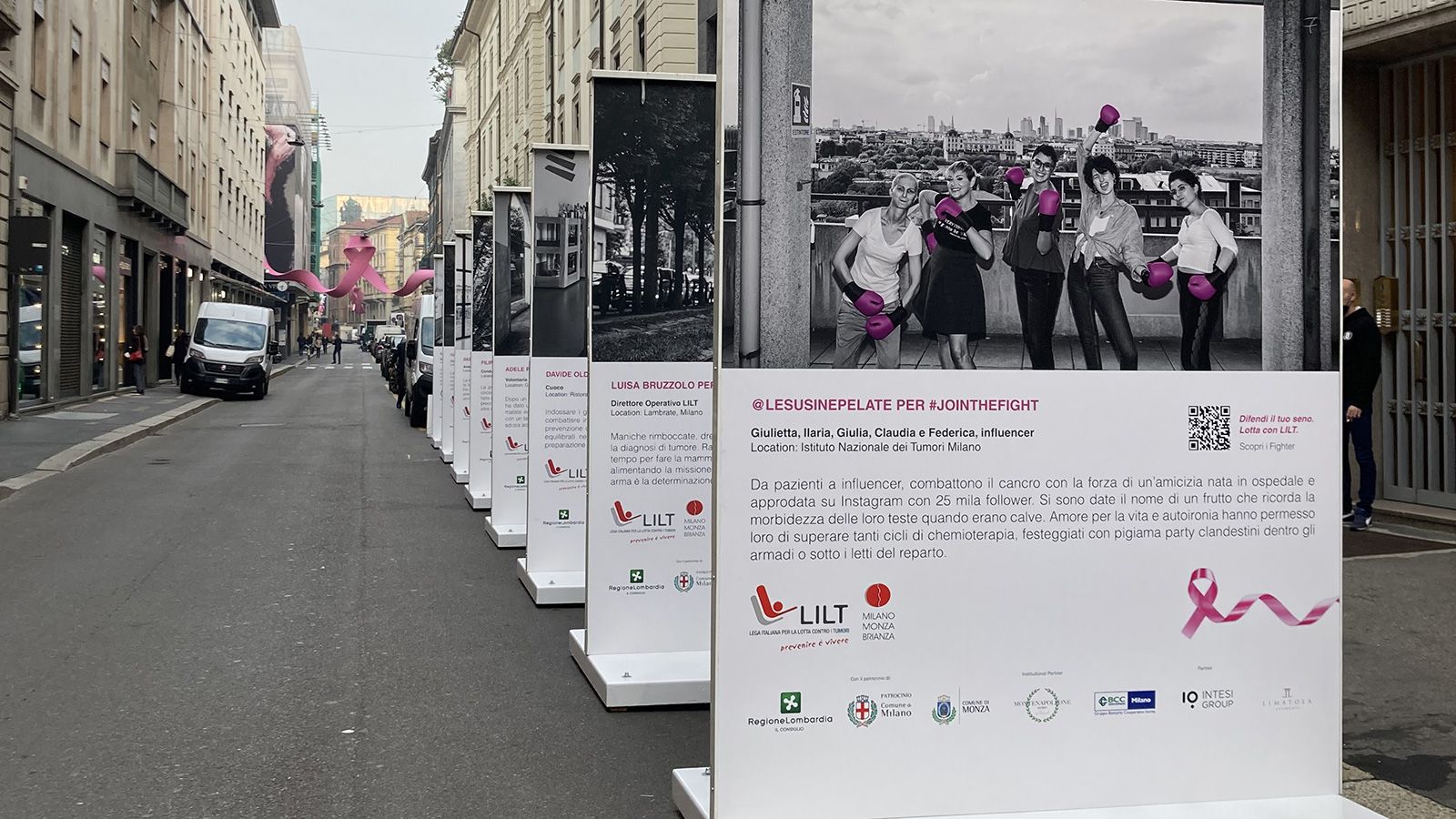 Dal 19 a 31 ottobre, nella centralissima via Montenapoleone di Milano, è stata ospitata la mostra fotografica “Join the Fight”: volti e storie di 16 personaggi famosi che si impegnano per sostenere la prevenzione contro i tumori, simbolicamente armati di guantoni rosa.