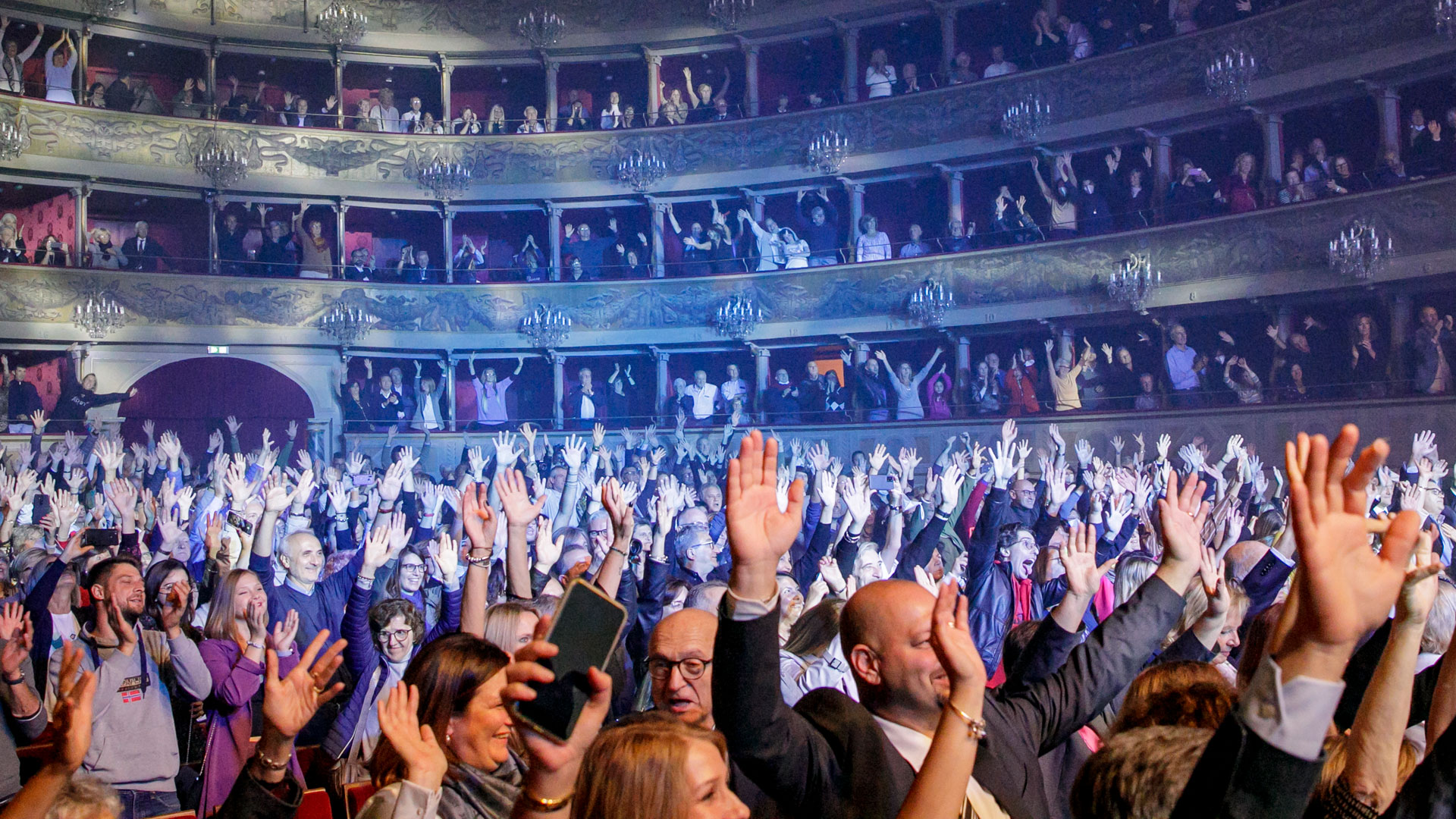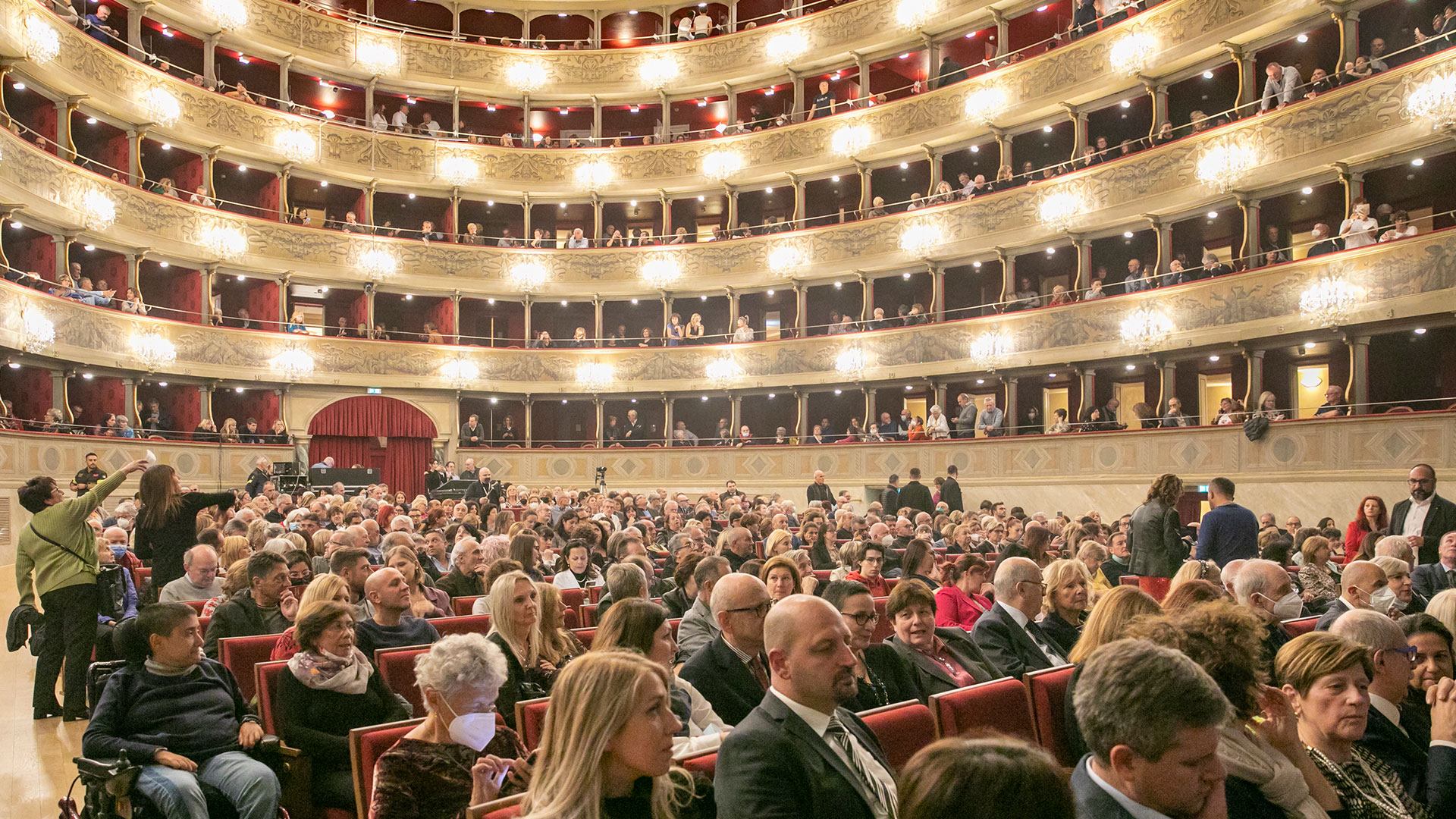 Roby Facchinetti è stato identificato come il miglior ambasciatore per questo compito: non solo per la carriera cinquantennale che lo ha portato tra le grandi firme della musica italiana, ma anche per un legame viscerale con la sua città natale: la Bergamo a cui, nella tragica circostanza nella prima ondata pandemica, ha dedicato la toccante “Rinascerò, rinascerai”. Nella cornice neoclassica del Teatro Donizetti, BCC Milano ha organizzato venerdì 30 settembre una tappa speciale del tour estivo Symphony. Il mix di grandi classici dei Pooh e di brani solista dell’artista è stato impreziosito dalla presenza, sul palco, della Ritmico Sinfonica Young Orchestra, composta da 25 musicisti under 25 e dieci voci del Coro Pop Art Voice Academy, sotto la direzione del Maestro Diego Basso. Travolgente l’affetto dei bergamaschi, accorsi in gran numero a un concerto evento dichiarato da tempo tutto esaurito, che Roby Facchinetti ha voluto immortalare con un selfie ricordo.