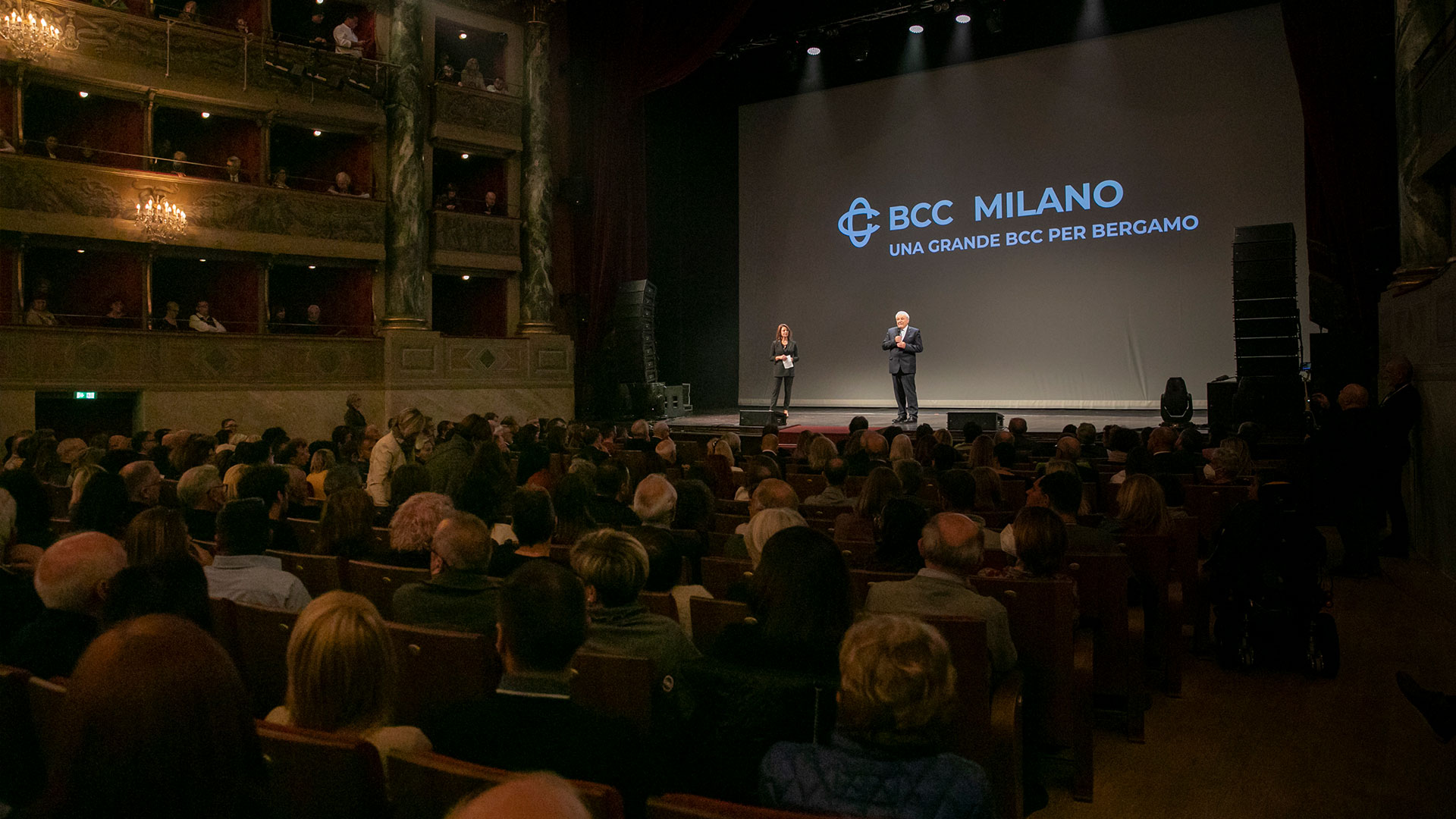Il presidente Giuseppe Maino presenta BCC Milano al pubblico del teatro Donizetti