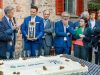 Il presidente Maino taglia la torta celebrativa nel cortile di Villa Gallerani.